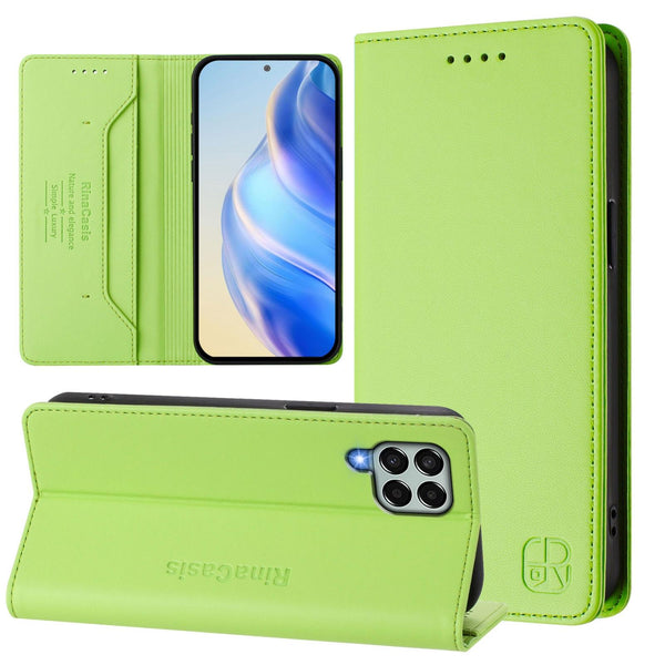 For Samsung Galaxy M33 5G Global RC01 Dual-Folded Magnetic Suction RFID Leather Phone Case(Grass Green)
