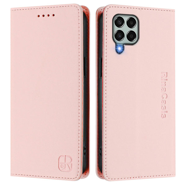 For Samsung Galaxy M33 5G Global RC01 Dual-Folded Magnetic Suction RFID Leather Phone Case(Pink)