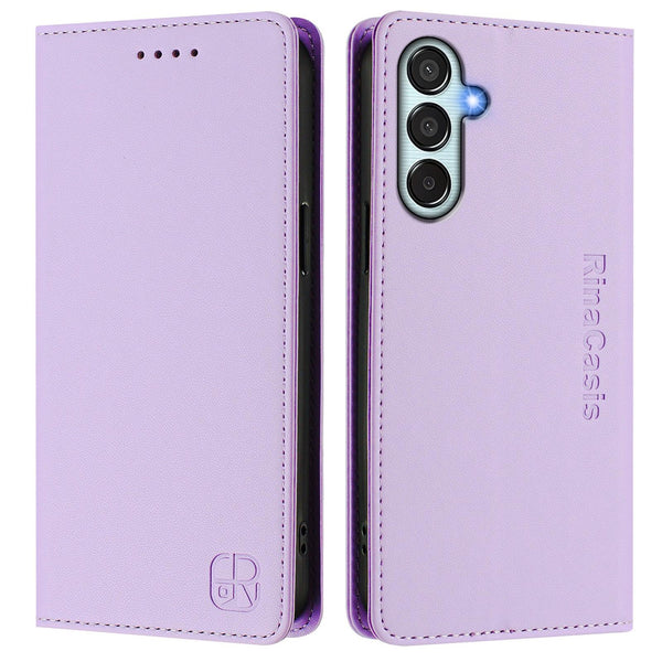 For Samsung Galaxy M34 5G / F34 5G RC01 Dual-Folded Magnetic Suction RFID Leather Phone Case(Light Purple)
