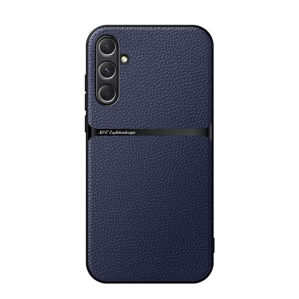 For Samsung Galaxy M34 5G Litchi Leather Magnetic Full Coverage Shockproof Phone Case(Navy Blue)