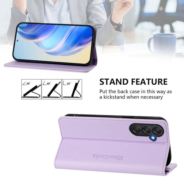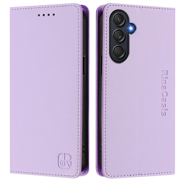 For Samsung Galaxy M54 5G Global / F54 RC01 Dual-Folded Magnetic Suction RFID Leather Phone Case(Light Purple)