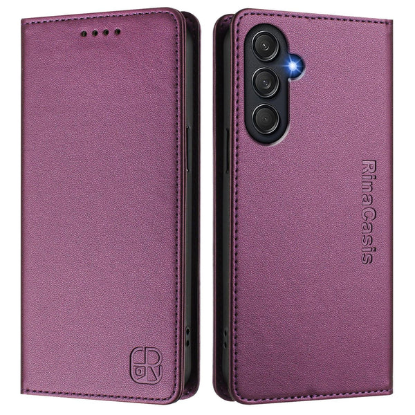 For Samsung Galaxy M54 5G Global / F54 RC01 Dual-Folded Magnetic Suction RFID Leather Phone Case(Violet)