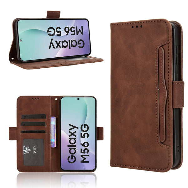 For Samsung Galaxy M56 5G Skin Feel Calf Texture Card Slots Leather Phone Case(Brown)