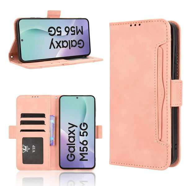 For Samsung Galaxy M56 5G Skin Feel Calf Texture Card Slots Leather Phone Case(Pink)