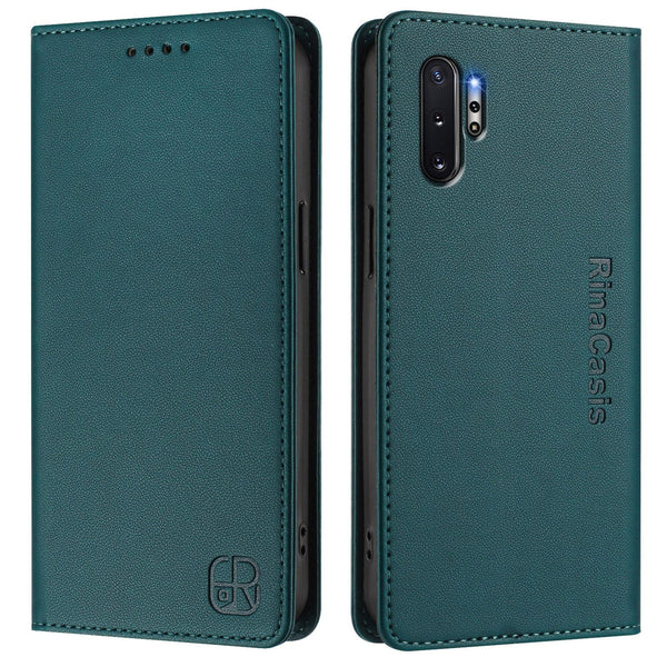 For Samsung Galaxy Note10+ RC01 Dual-Folded Magnetic Suction RFID Leather Phone Case(Dark Green)
