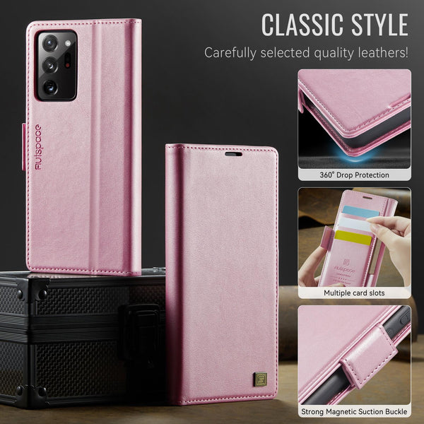 For Samsung Galaxy Note20 Ultra AutSpace A11 Side Buckle MagSafe Magnetic RFID Phone Leather Case(Rose Gold)