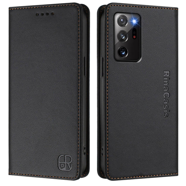 For Samsung Galaxy Note20 Ultra RC01 Dual-Folded Magnetic Suction RFID Leather Phone Case(Black)