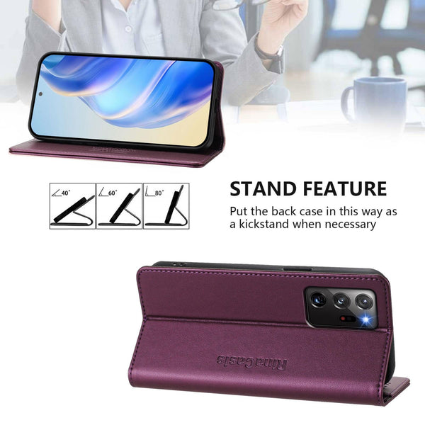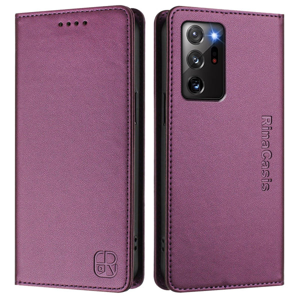 For Samsung Galaxy Note20 Ultra RC01 Dual-Folded Magnetic Suction RFID Leather Phone Case(Violet)