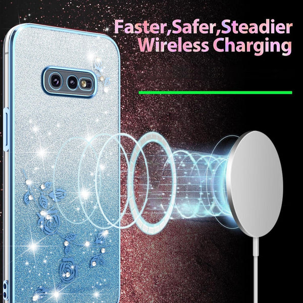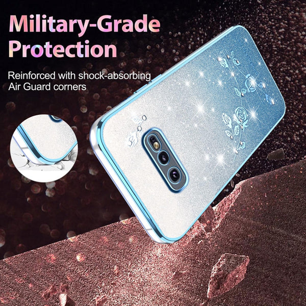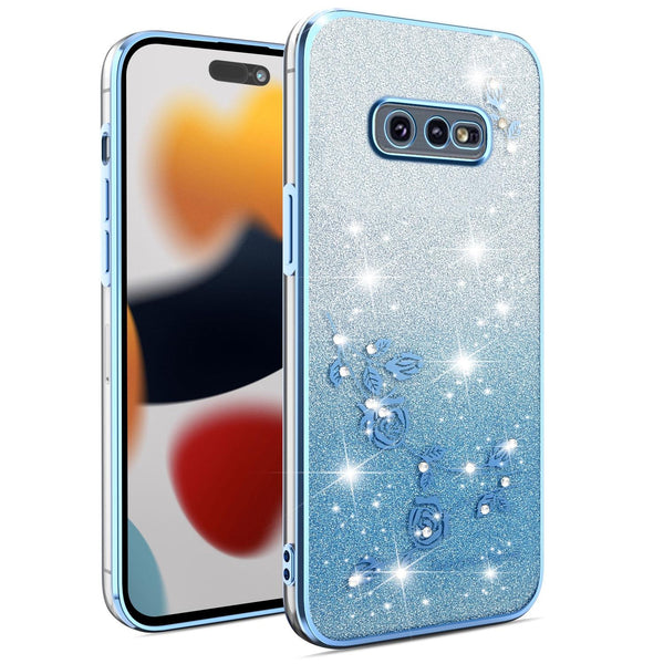 For Samsung Galaxy S10e Gradient Glitter Flower All-inclusive Phone Case(Blue)