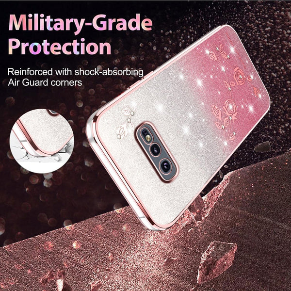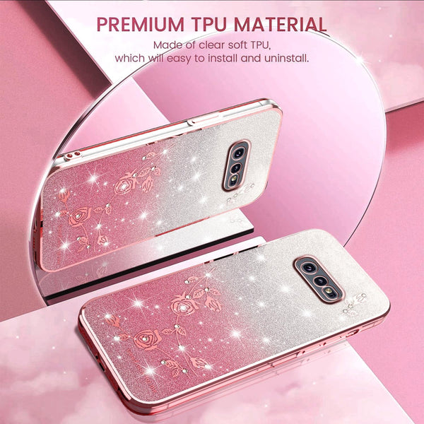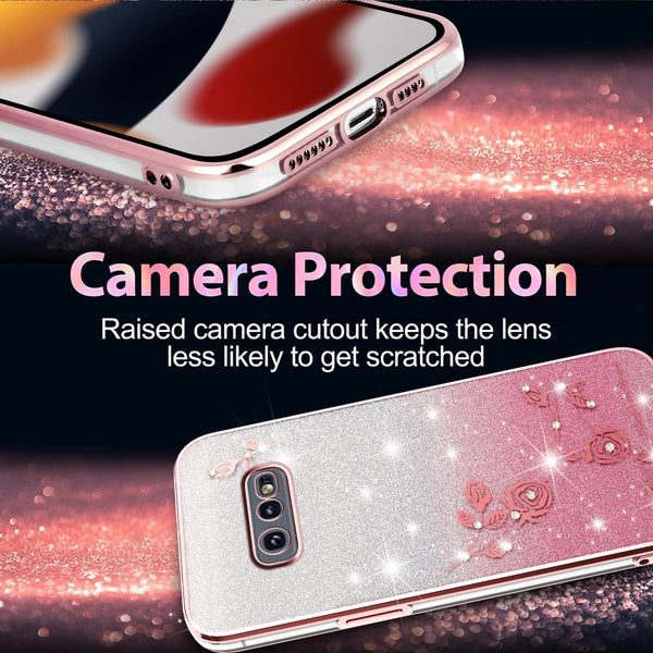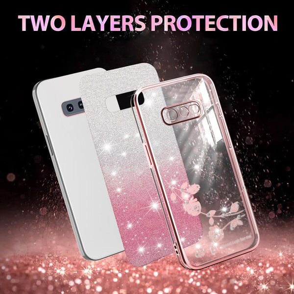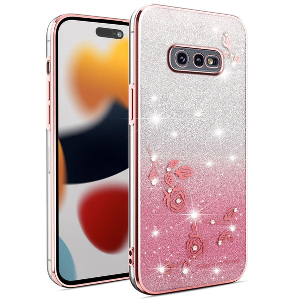 For Samsung Galaxy S10e Gradient Glitter Flower All-inclusive Phone Case(Pink)