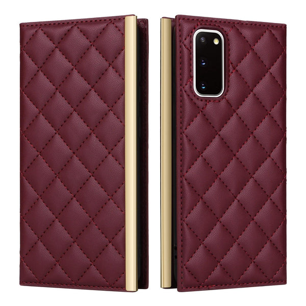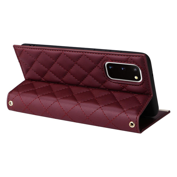 For Samsung Galaxy S20+ Crossbody Rhombic Sucker Leather Phone Case(Claret)