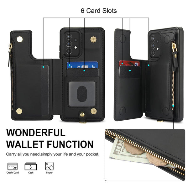 For Samsung Galaxy S20+ Double Flap Zipper RFID Leather Phone Case with Short Lanyard(Black)