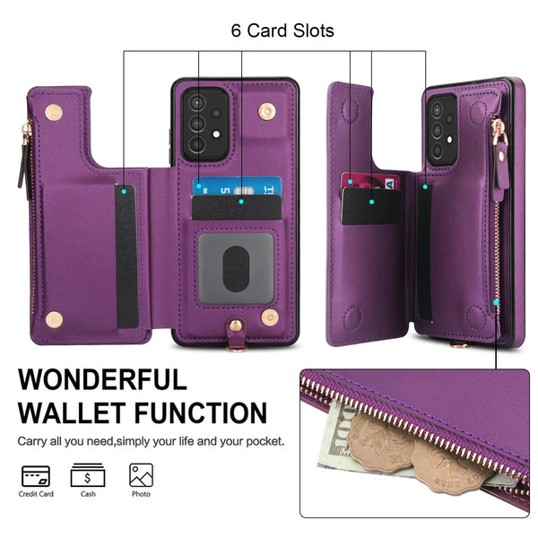 For Samsung Galaxy S20+ Double Flap Zipper RFID Leather Phone Case with Short Lanyard(Dark Purple)
