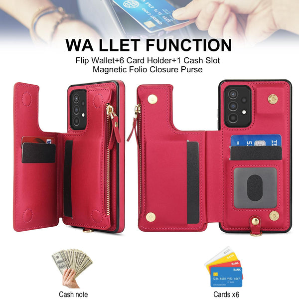 For Samsung Galaxy S20+ Double Flap Zipper RFID Leather Phone Case with Short Lanyard(Red)