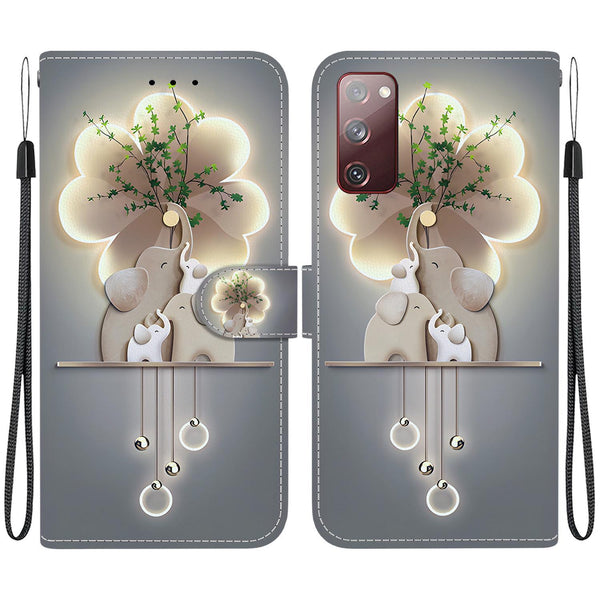 For Samsung Galaxy S20 FE Crystal Texture Colored Drawing Leather Phone Case(Elephants)