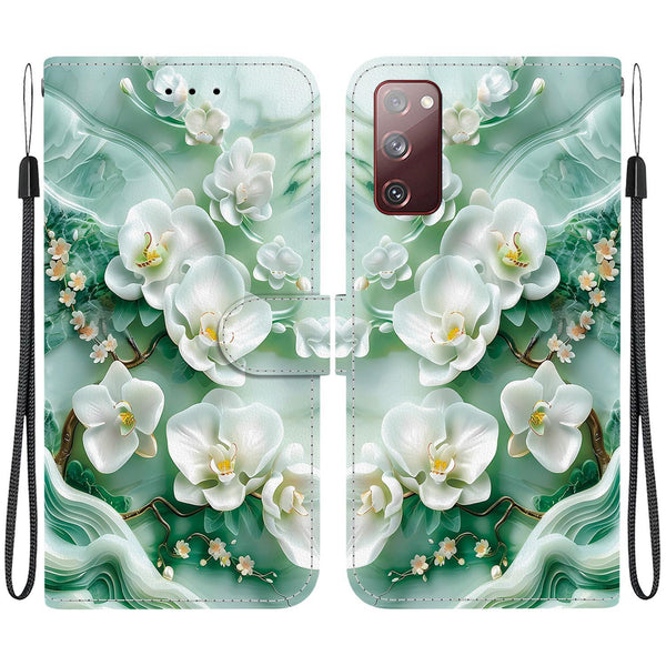 For Samsung Galaxy S20 FE Crystal Texture Colored Drawing Leather Phone Case(Jade Flowers)