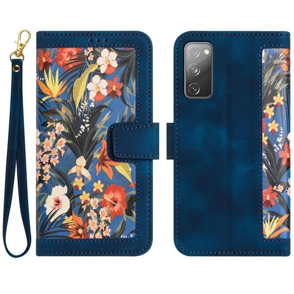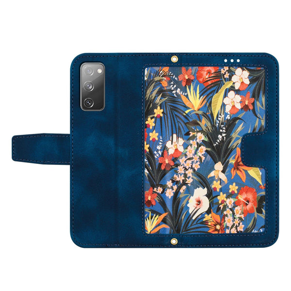For Samsung Galaxy S20 FE Floral Pattern Leather Phone Case with Lanyard(Dark Blue)
