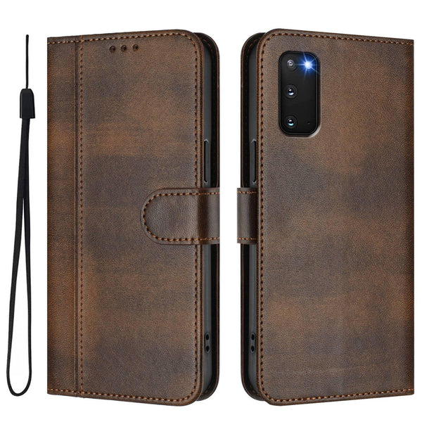 For Samsung Galaxy S20 FE Line Splicing Buckle Retro Leather Phone Case(Brown)