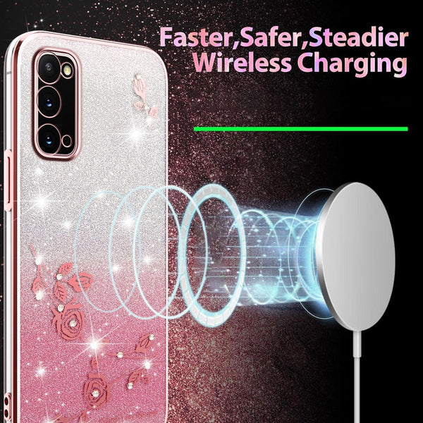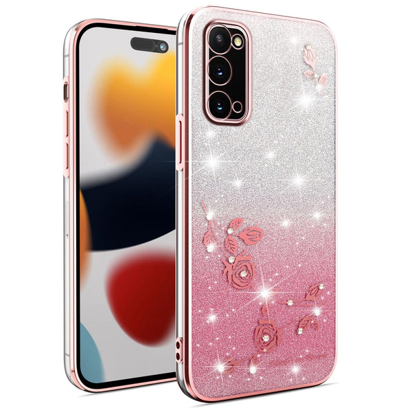 For Samsung Galaxy S20 Gradient Glitter Flower All-inclusive Phone Case(Pink)