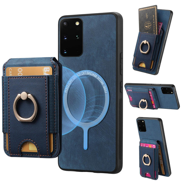 For Samsung Galaxy S20+ Retro Splitable Magnetic Stand Card Bag Leather Phone Case(Blue)