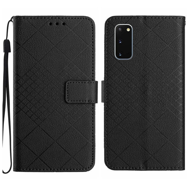 For Samsung Galaxy S20 Rhombic Grid Texture Leather Phone Case(Black)