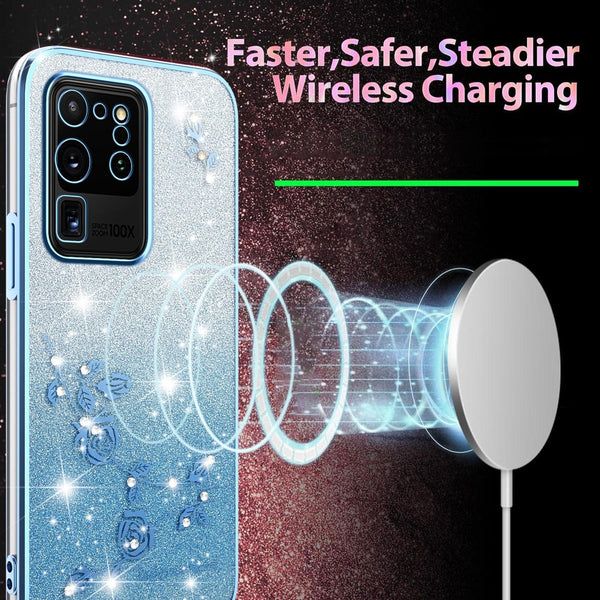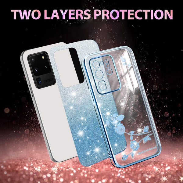 For Samsung Galaxy S20 Ultra Gradient Glitter Flower All-inclusive Phone Case(Blue)
