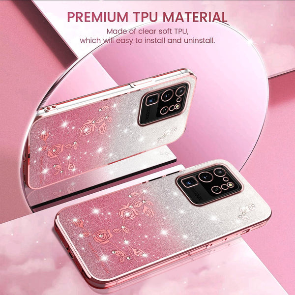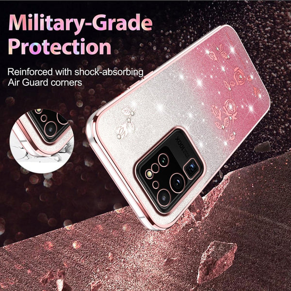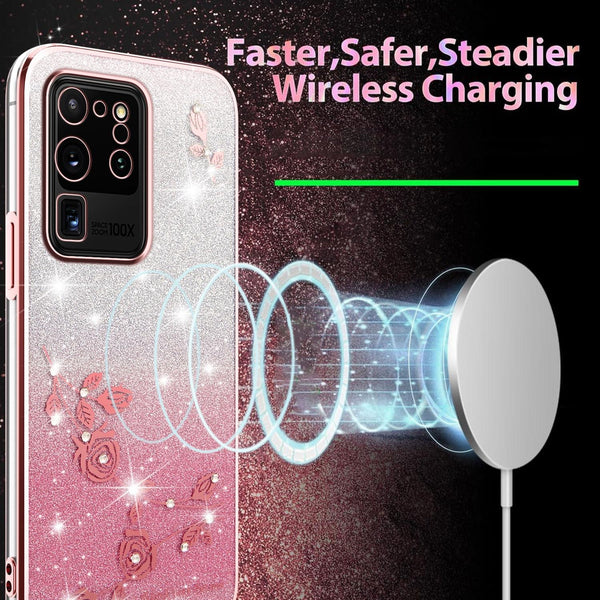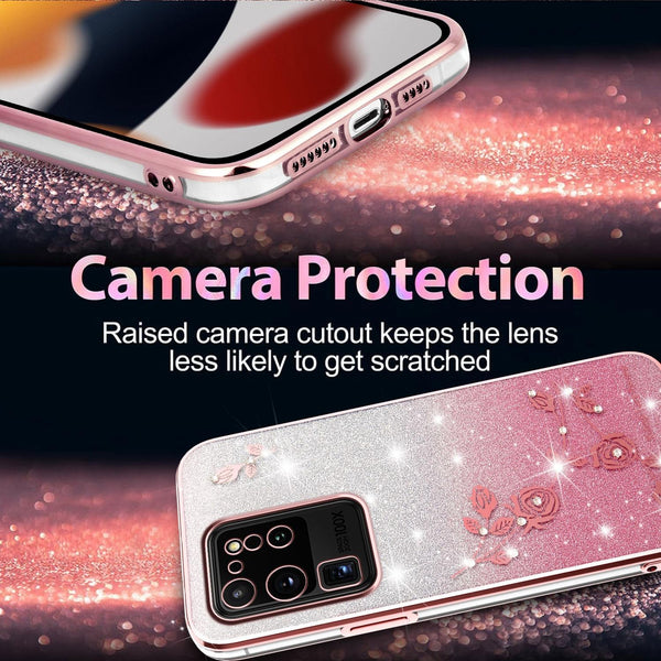 For Samsung Galaxy S20 Ultra Gradient Glitter Flower All-inclusive Phone Case(Pink)