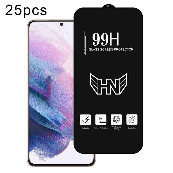 For Samsung Galaxy S21+ 5G 25pcs 0.18mm High Aluminum Large Arc Full Screen Tempered Glass Film, Support Fingerprint Unlocking