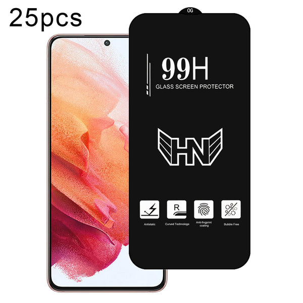 For Samsung Galaxy S21 5G 25pcs 0.18mm High Aluminum Large Arc Full Screen Tempered Glass Film, Support Fingerprint Unlocking