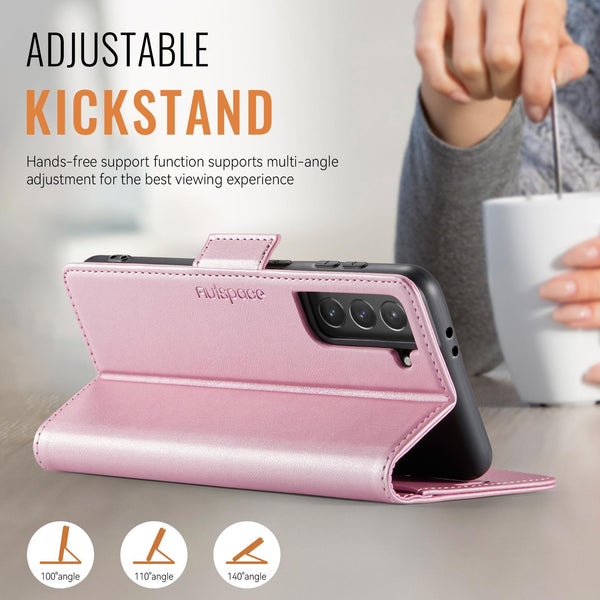 For Samsung Galaxy S21+ 5G AutSpace A11 Side Buckle MagSafe Magnetic RFID Phone Leather Case(Rose Gold)