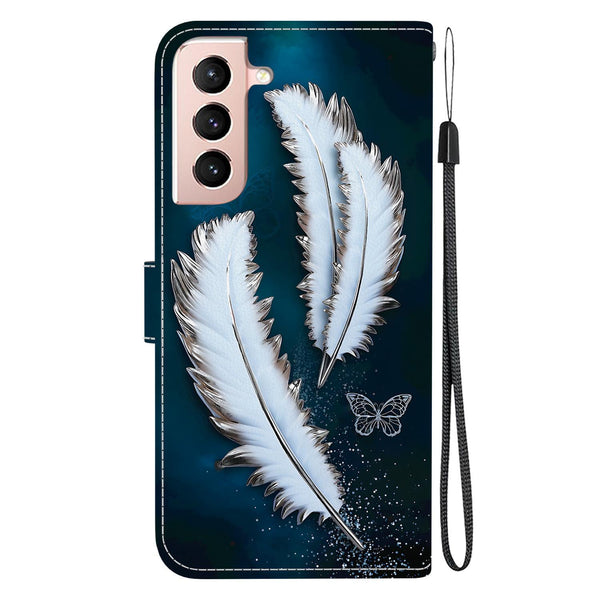 For Samsung Galaxy S21+ 5G Crystal Texture Colored Drawing Leather Phone Case(White Butterfly Feathers)