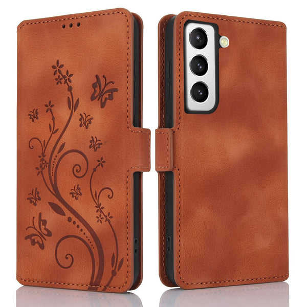 For Samsung Galaxy S21 5G Dreamy Butterfly Love Flower Embossed Leather Phone Case(Brown)