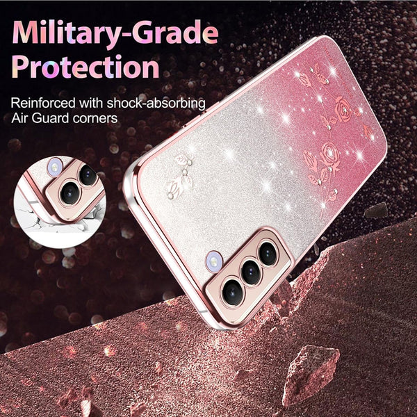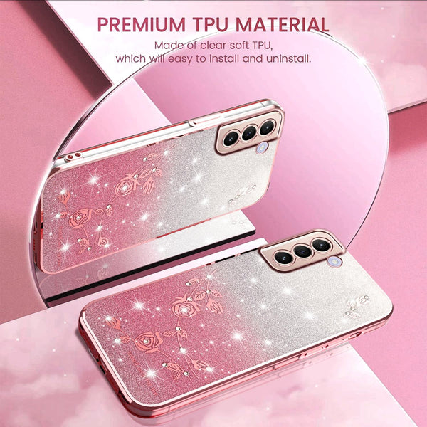 For Samsung Galaxy S21+ 5G Gradient Glitter Flower All-inclusive Phone Case(Pink)