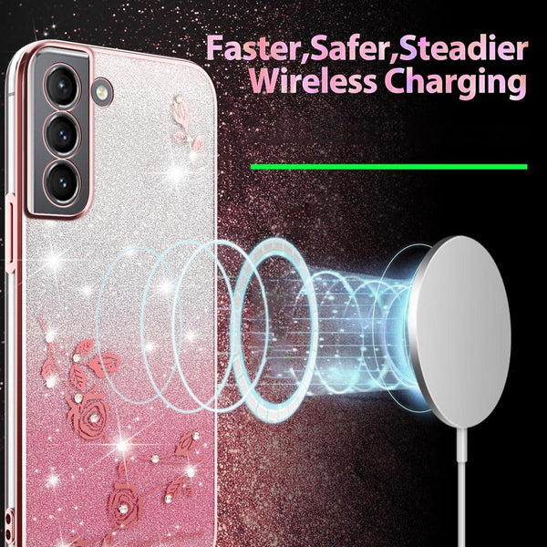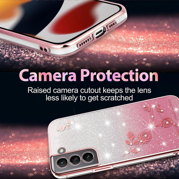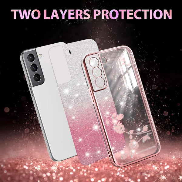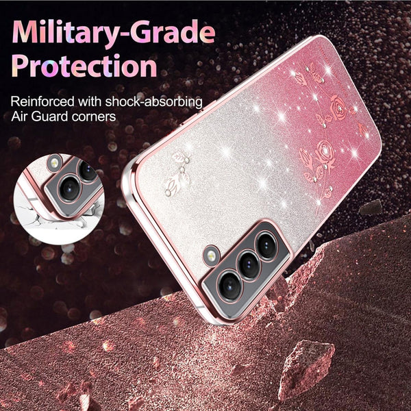For Samsung Galaxy S21 5G Gradient Glitter Flower All-inclusive Phone Case(Pink)