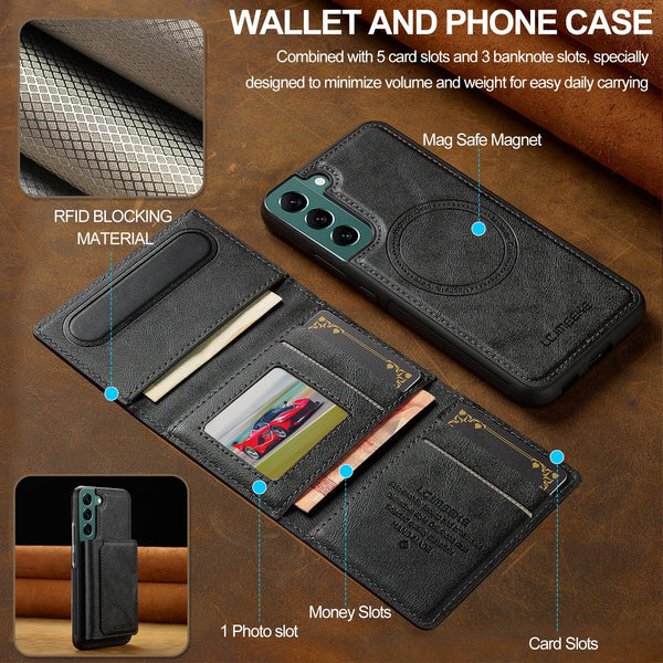 For Samsung Galaxy S21 5G LC.IMEEKE L5 Series Detachable RFID Card Bag Magsafe Phone Case(Black)