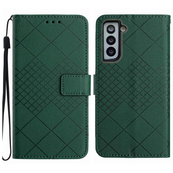 For Samsung Galaxy S21+ 5G Rhombic Grid Texture Leather Phone Case(Green)