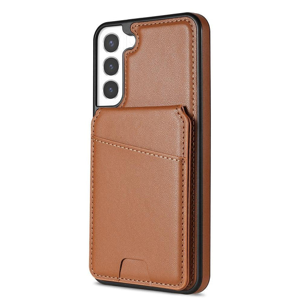 For Samsung Galaxy S21 5G Skin Feel Detachable Card Bag Magsafe Phone Case(Brown)