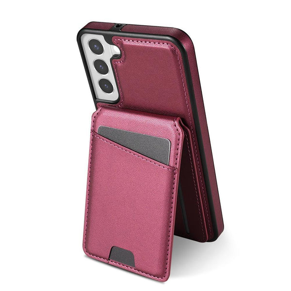 For Samsung Galaxy S21 5G Skin Feel Detachable Card Bag Magsafe Phone Case(Wine Red)