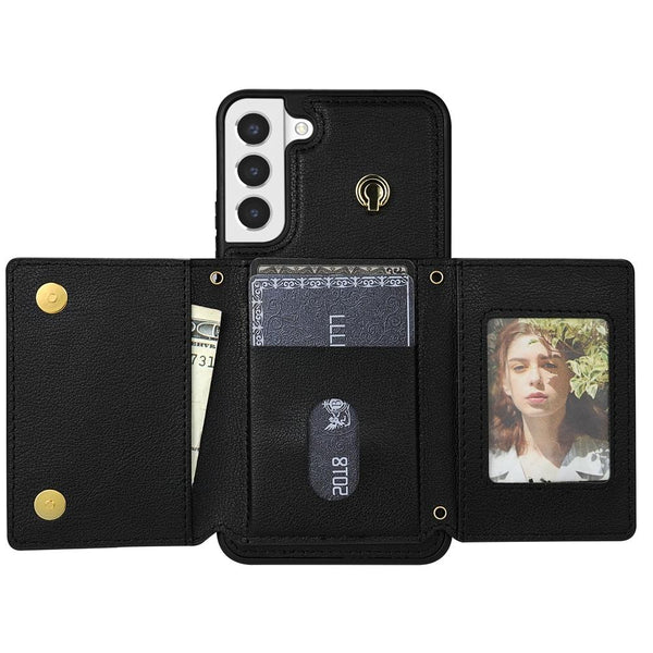 For Samsung Galaxy S21 5G Three Fold Card Bag Phone Case with Long Lanyard(Black)