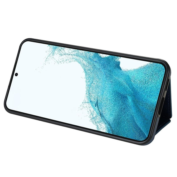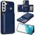For Samsung Galaxy S21+ 5G Three Fold Card Bag Phone Case with Long Lanyard(Blue)