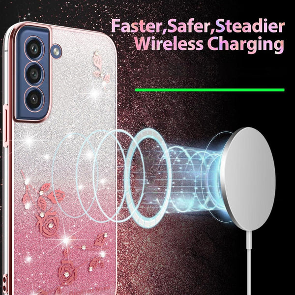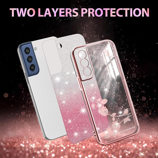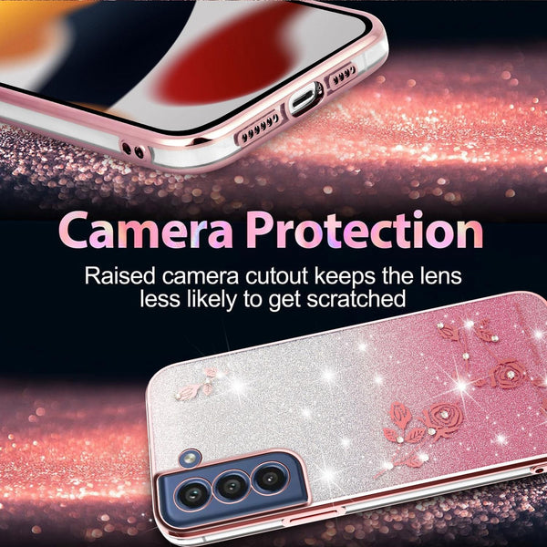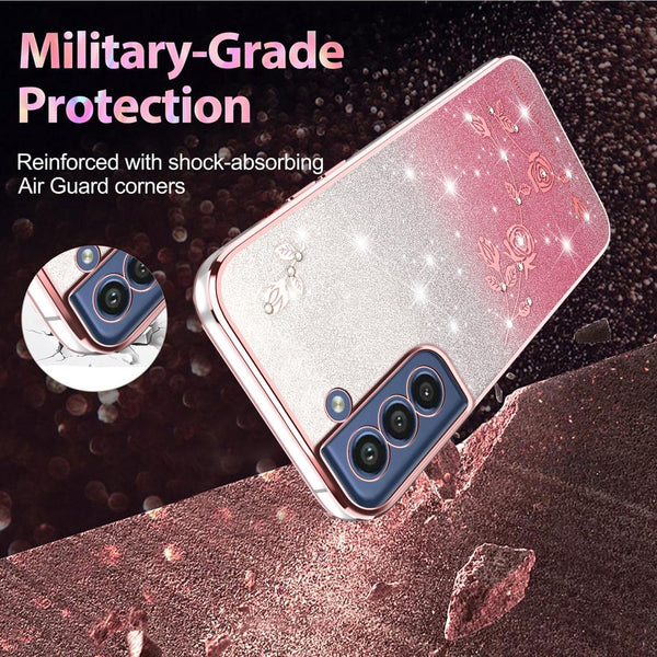 For Samsung Galaxy S21 FE 5G Gradient Glitter Flower All-inclusive Phone Case(Pink)
