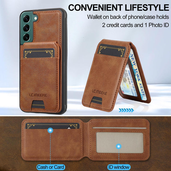 For Samsung Galaxy S21 FE 5G LC.IMEEKE L3 Series Detachable RFID Card Bag Magsafe Phone Case(Brown)