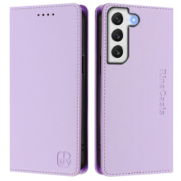 For Samsung Galaxy S21 FE 5G RC01 Dual-Folded Magnetic Suction RFID Leather Phone Case(Light Purple)