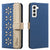 For Samsung Galaxy S21 FE 5G Splicing Color Hollow Flower Pattern RFID Leather Phone Case(Dark Blue)