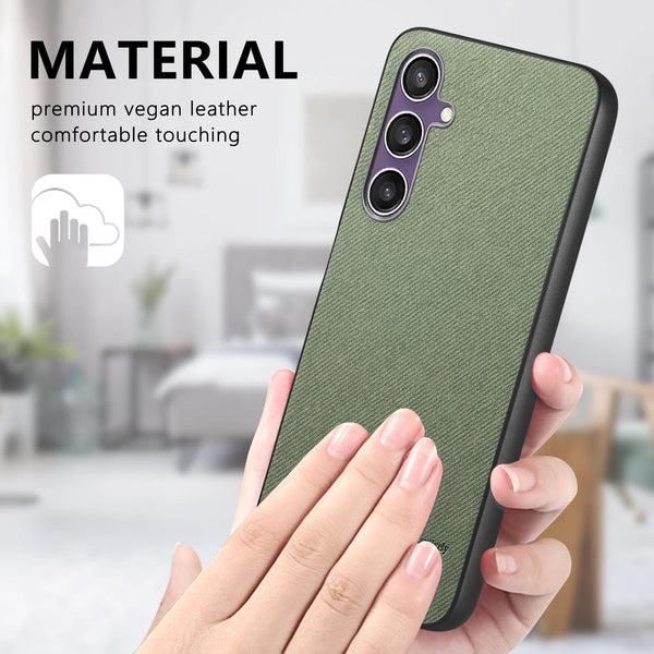 For Samsung Galaxy S21 FE 5G Twill Fabric Leather Skin Back Phone Case(Green)