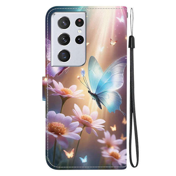 For Samsung Galaxy S21 Ultra 5G Crystal Texture Colored Drawing Leather Phone Case(Butterfly Love Flower)