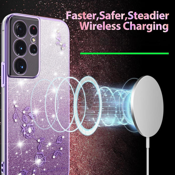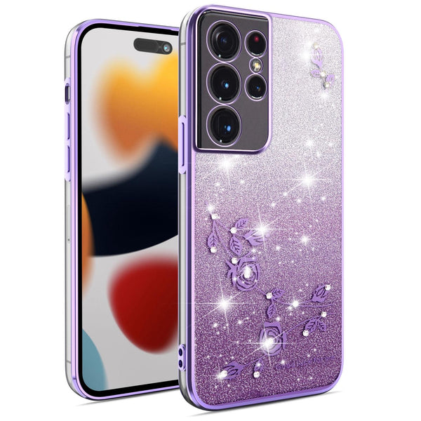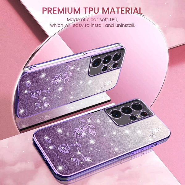 For Samsung Galaxy S21 Ultra 5G Gradient Glitter Flower All-inclusive Phone Case(Purple)