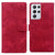 For Samsung Galaxy S21 Ultra 5G Lace Floral Embossed Magnetic Buckle PU Phone Case With Wrist Strap(Red)