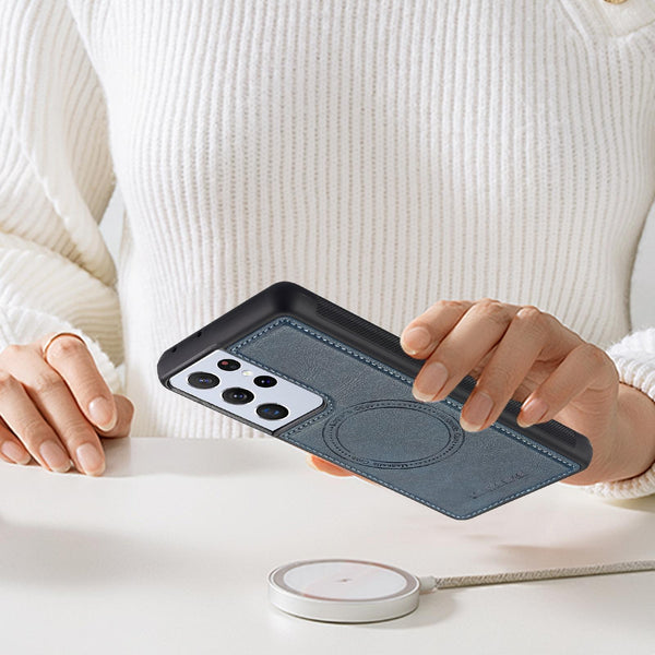 For Samsung Galaxy S21 Ultra 5G LC.IMEEKE Magsafe Phone Case(Blue)