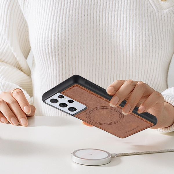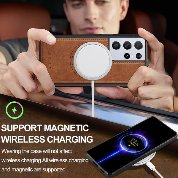 For Samsung Galaxy S21 Ultra 5G LC.IMEEKE Magsafe Phone Case(Brown)